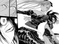 Talking about this issue let's get the one thing I didn't like at all out of the way first: the gore and viscera. One of the things that has made me kind of queasy through out the entire series is the blood. I understand that this is a monster manga but for the most part it's focus was romantic-comedy. Lately we have been treated to a big heaping doses of story telling. Along with that the realism has been getting more and more detailed. Now it is getting to a point that maybe going over the line even for me. There's a scene in which Moka's mother, Akasha, is cut in half and rather graphically depicted. Then later we see her laying down with some spilled guts.